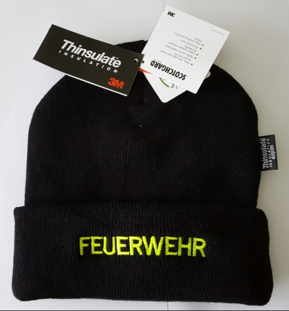 Wintermütze mit neongelb gestickten Schriftzug "FEUERWEHR"