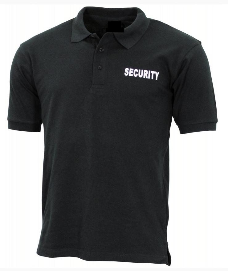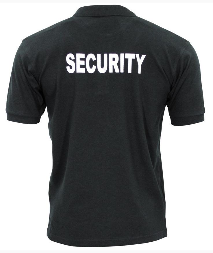 Druck "Security" auf Rücken und Brust 3er Knopfleiste mit farblich abgestimmten Knöpfen Rippstrickkragen mit Nackenband Ärmelabschluss mit Rippenbündchen Doppelnaht am Bund verstärkter Seitenschlitz