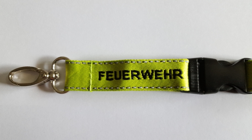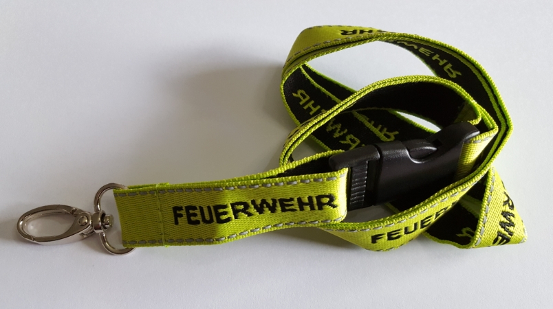 Feuerwehr Lanyard (Schlüsselband) neongelb, 20 mm breites und 90 cm langes Flachband mit Kunststoffclipverschluß, Schlüsselkarabiner aus Metall.